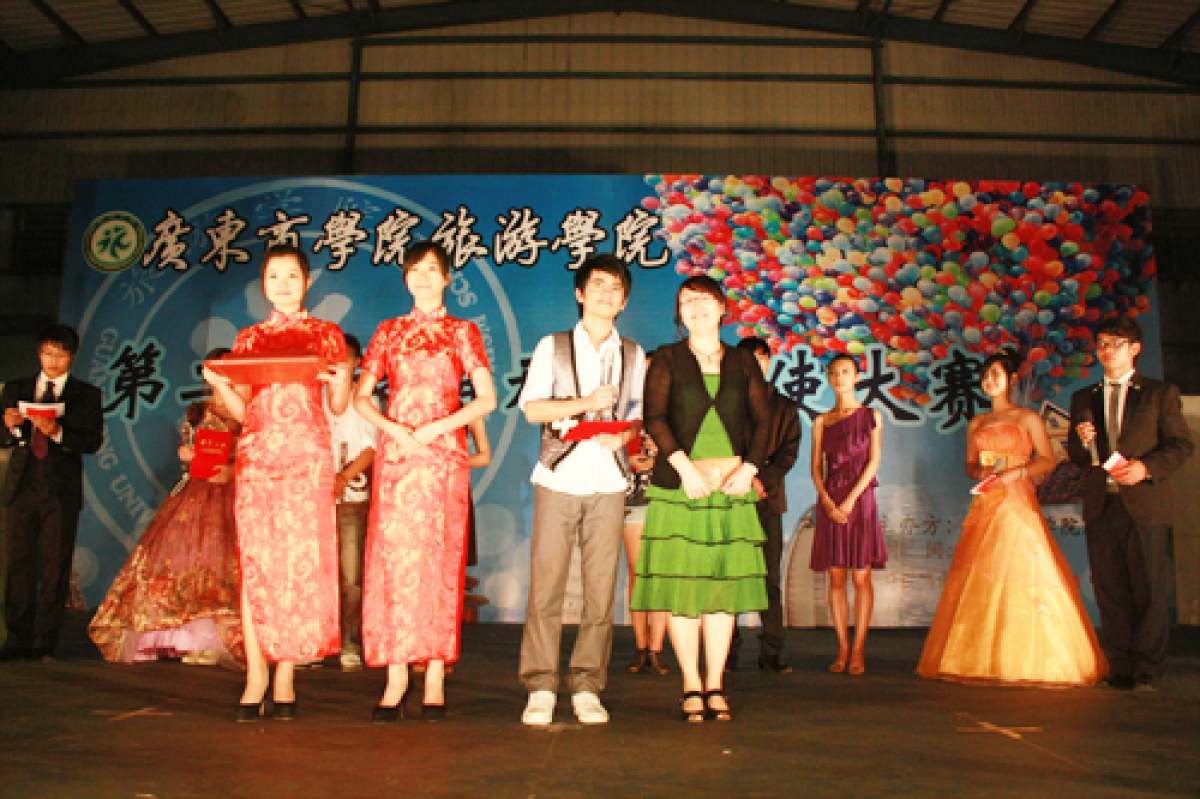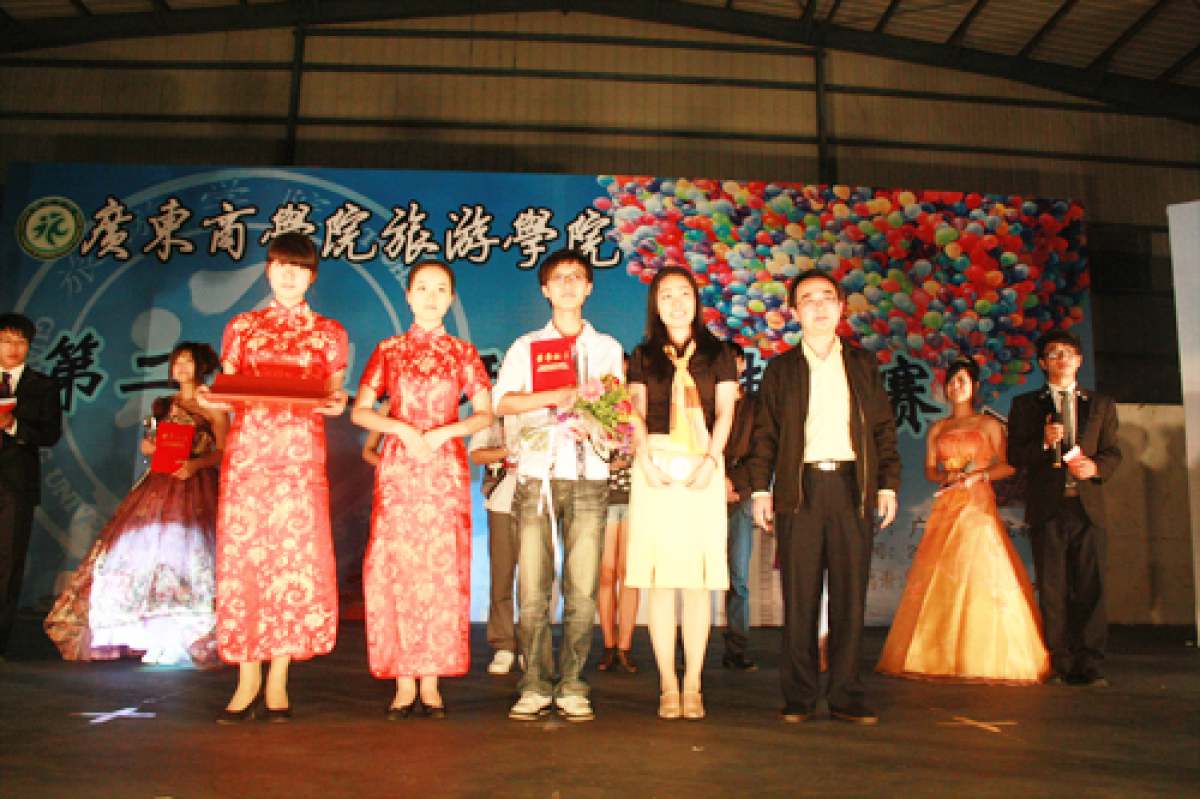 4月19日晚,由旅游学院举办的第二届旅游形象大使大赛在三水校区风雨球场举行。经过一番激烈角逐,10会展1班的杨尚贤摘得桂冠,亚军和季军分别由10酒店管理1班的陈荣彬和10旅游管理1班的张银凤获得,10会展2班的曾佩欣则将最佳人气奖和最佳才艺奖一并收入囊中。