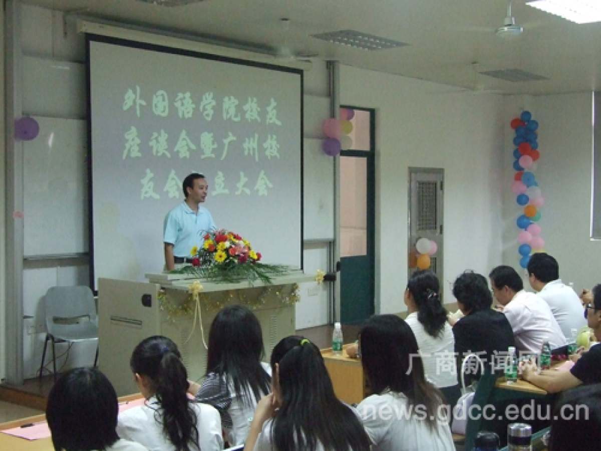 会上,彭翠峰宣布外国语学院广州校友会成立,校友谢如松被推举为会长。会后,06级的学生代表还给各届校友们献上了精彩的表演。
