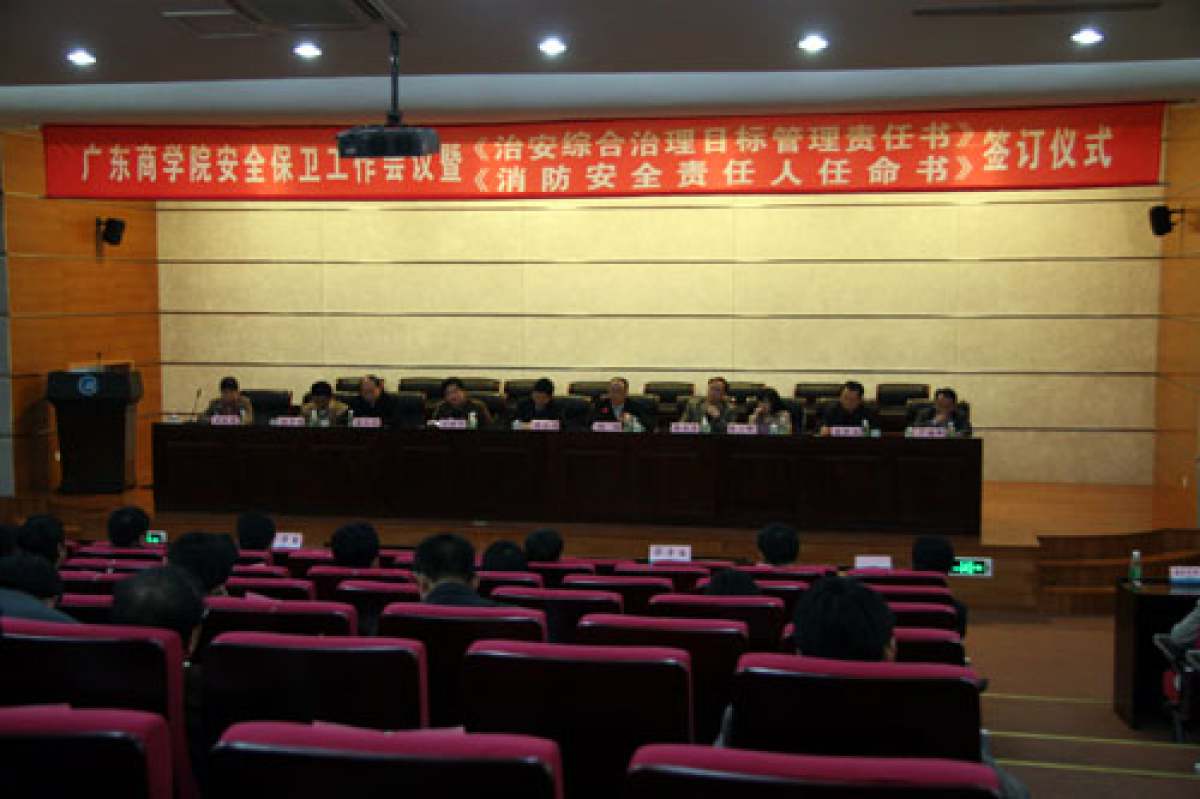 会议强调,各单位要按照学校领导讲话精神,结合学校安全保卫工作部署,认真落实《广东商学院治安综合治理目标管理责任书》和《消防安全责任人任命书》的各项要求,为实现我院教育事业又好又快发展营造安全、稳定、和谐的校园环境。
