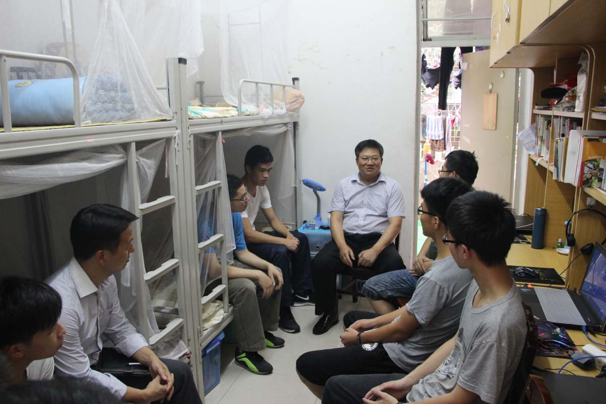 5月4日下午,校党委副书记吴琦带领校团委干部深入学生宿舍,慰问广大团员青年,与青年学子共度“五四”青年节。 在25栋学生宿舍楼,吴琦逐个宿舍问候学生。在113宿舍,他与14级广告策划班的同学深入交谈,详细地了解同学们的校园生活、专业学习状况,分享了自己学生时代过“五四”青年节的方式,对同学们在学习生活中遇到的困惑给予解答。在谈到当前大学生的热门话题“创新创业”时,同学们纷纷结合自己的专业特点和自身思考畅谈看法。吴琦表示,学校高度重视对学生创新创业能力的培养,正在逐步完善机制,努力做好创新创业的课程建设、科学研究、孵化实践,目前已形成了以“挑战杯”系列竞赛为龙头,KAB创业课程建设与创业园区、孵化基地协调发展的创新创业教育格局,搭建平台有效促进大学生创新创业能力提升。
