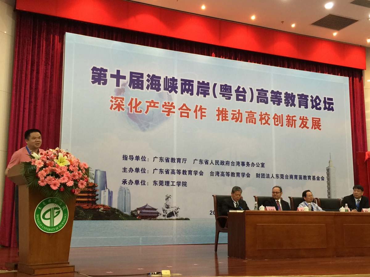 论坛主题为深化产学合作、推动高校创新发展,由广东省教育厅和广东省人民政府台湾事务办公室指导,广东省高等教育学会、台湾高等教育学会和东莞台商育苗教育基金会主办。广东省教育厅和东莞市政府领导以及来自广东省和台湾地区的部分高校和企业代表出席论坛。我校港澳台事务办公室主任李新博随行参加论坛。