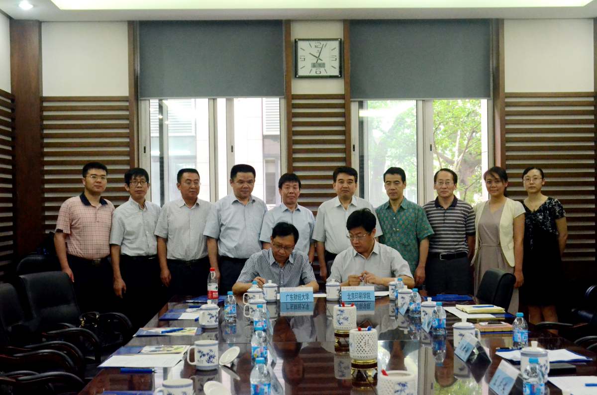 为适应媒体融合时代对新型数字内容生产、信息传播及媒介经营人才的需求,创新人才培养模式,提升人才培养质量,增强专业特色和竞争力,我校与北京印刷学院展开强强联合。6月4日,校长王华、副校长杜承铭带领我校代表团赴北京印刷学院,签订了广东财经大学与北京印刷学院新闻传播类专业交流合作框架协议,我校人文与传播学院院长江冰、北印新闻出版学院执行院长魏超代表双方在协议上签字。按照协议,我校从2015年起,每年选拔10名编辑出版专业大三学生交换到北印数字出版专业学习一年,两校学分互认,协同培养。此外,协议还包括师资交流、教学科研合作等项目。