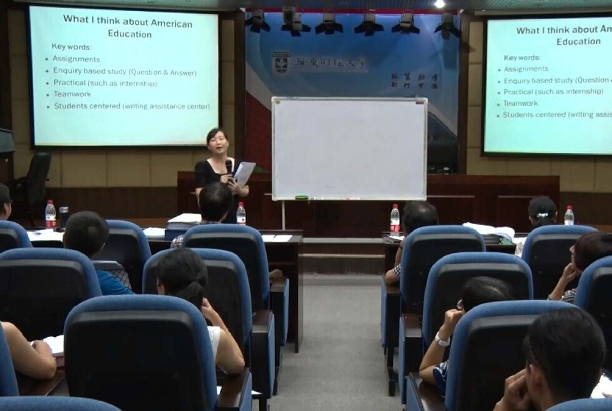 为提升我校教师全英教学水平,学习国际化教育理念和教学方法,加强与国外高校的学术交流,拓展国际视野,2014年我校在美国佩斯大学建立第一个海外研修基地,并选派首批10名教师于今年1月份赴基地进行一个学期的海外研修。教师在研修期间全程修读2门学科相关课程,参加高等教育系列专题讲座,于今年5月份陆续完成研修任务返校。
