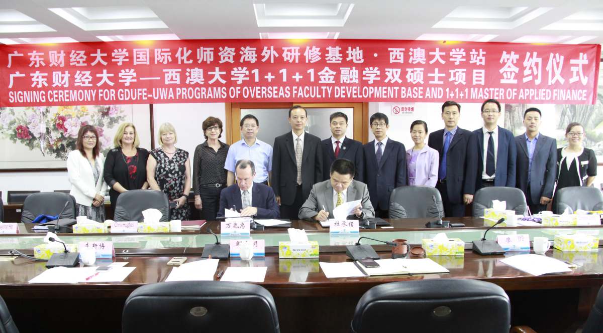 7月17日上午,西澳大学副校长Iain Watt、商学院国际部主任Bev Partridge、国际协议负责人Chris Hughes、人文学院市场拓展部主任Christine Lindsey以及澳中国际文化交流协会会长苏康华等一行6人访问我校。副校长杜承铭、副校长兼金融学院院长邹新月在第一会议室会见来宾。双方共同签署“广东财经大学国际化师资海外研修基地·西澳大学站”和“广东财经大学—西澳大学1+1+1金融学双硕士项目”协议,并就两校新闻学等专业3+1+1本硕连读项目的协议草稿进行商讨。