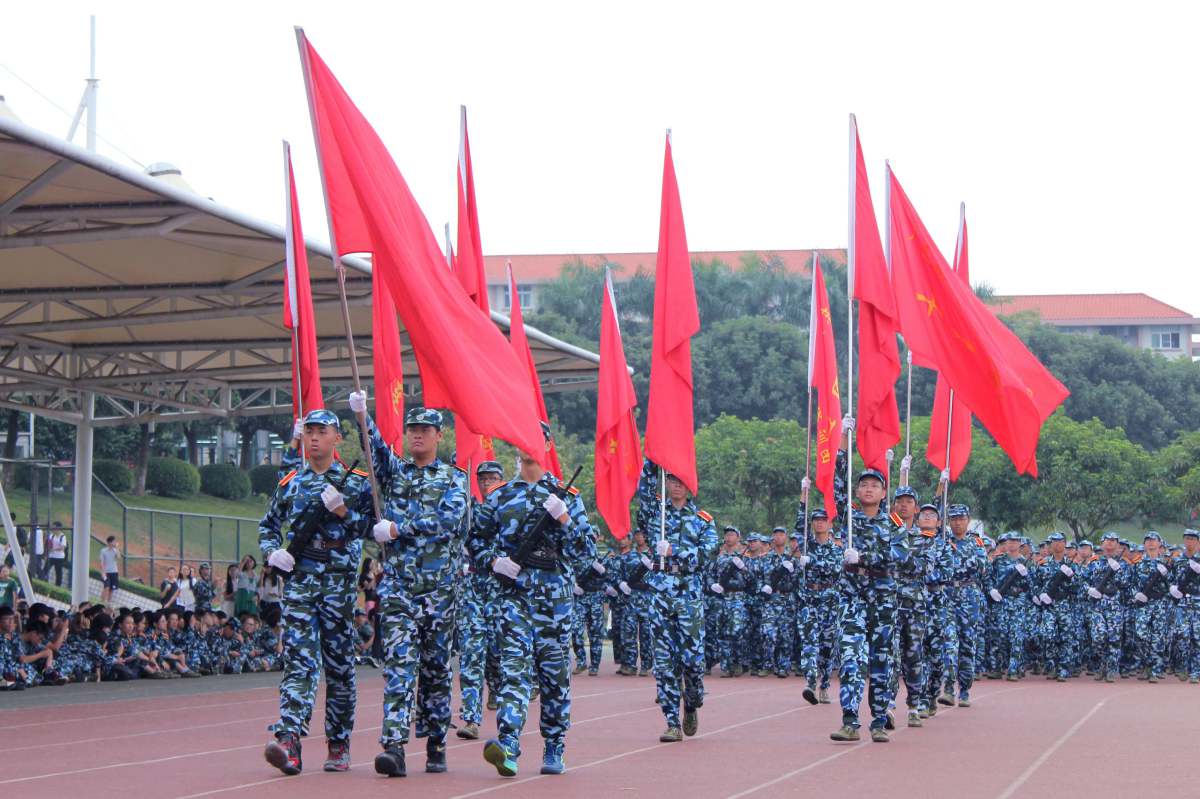 分列式随后开始。伴随着激昂的音乐,一个个身穿深蓝军服的战斗方阵,踏着整齐划一、坚定有力的步伐向我们走来,其势如澎湃大海。经过13天厉炼的全团新兵,一个个昂首挺胸、英姿飒爽、斗志昂扬,刚毅的神态、奋发的激情,充分展示了广财学子的青春风采。