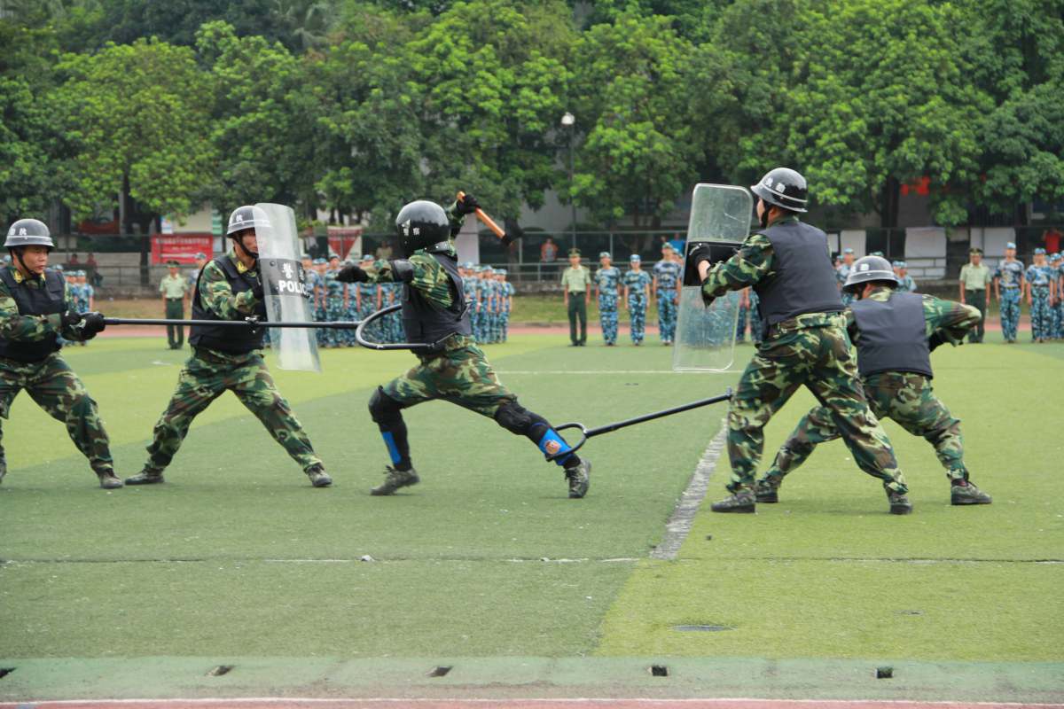 冒风雨,顶烈日;强体魄,砺心志。历时13天的2015级本科新生军训顺利结束。今天上午,三水与广州两个校区同时举行阅兵总结大会,七千余名新生接受严格检阅,展现丰硕成果。公安边防部队高等专科学校王兵上校、军训团团长曹炎中校及全体参训官兵,校长王华,副校长杜承铭、于海峰、陈国栋及各学院、相关部门负责人出席大会。武装部部长郑金栈、副部长曾忠诚分别主持三水和广州大会。