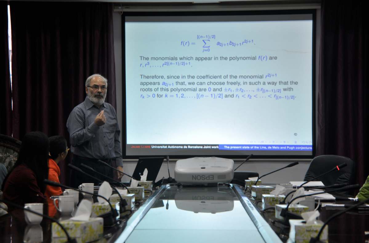 三位教授分别在论坛上介绍了当前数学研究中的热点和难点问题。Jaume Llibre作了题为“The present status of the Lins, de Melo and Pugh conjecture on the limit cycles of the Liénard differential equations”的学术报告,介绍了著名的Lins,de Melo,Pugh猜想,以及该猜想的最新研究进展和他们的相关工作。张祥作了题为“Equivalence and limit cycle bifurcation of piecewise smooth differential systems with a center”的学术报告,介绍了分片光滑微分系统的极限环分支问题。黄文韬作了题为“奇点量方法在偏微分方程中的应用”的学术报告,介绍了利用奇点量研究偏微分方程中周期波解问题。