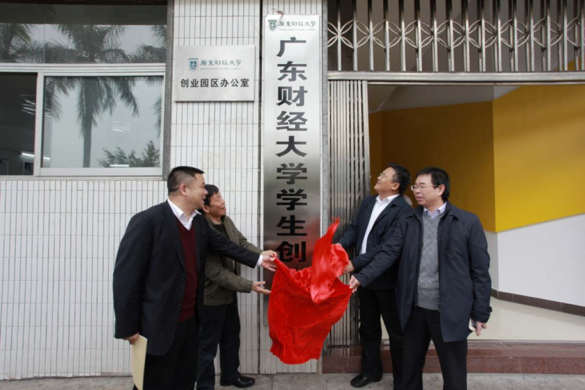 12月22日下午,广东财经大学学生创业园揭牌仪式在广州校区创业园区举行。校长王华,党委副书记吴琦,副校长杜承铭、邹新月共同为创业园区揭牌。