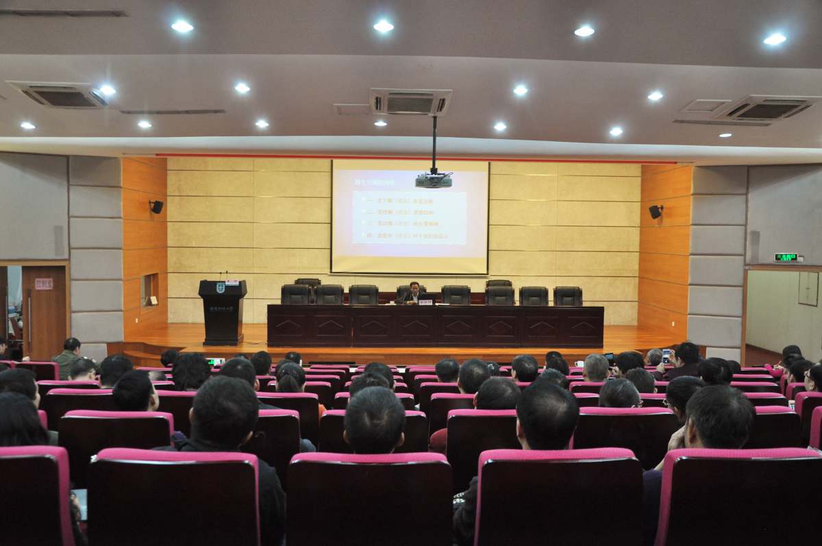 12月22日下午,校党委中心组举行扩大学习会,邀请省委宣讲团成员、省发改委副主任余云州来校作党的十八届五中全会精神专题宣讲报告。校党委中心组成员、全体中层干部参加学习,校长王华主持学习会。