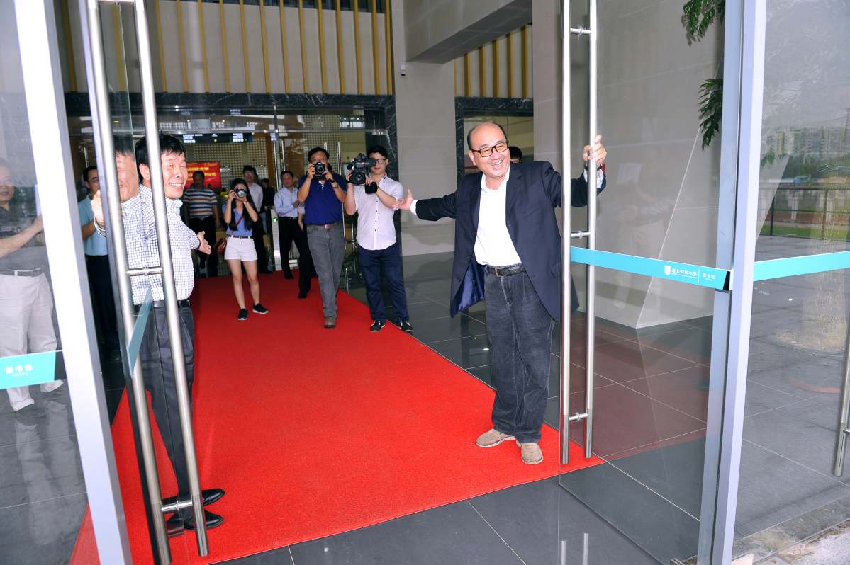校党委书记黄晓波、校长王华共同打开新馆北门迎接同学的到来