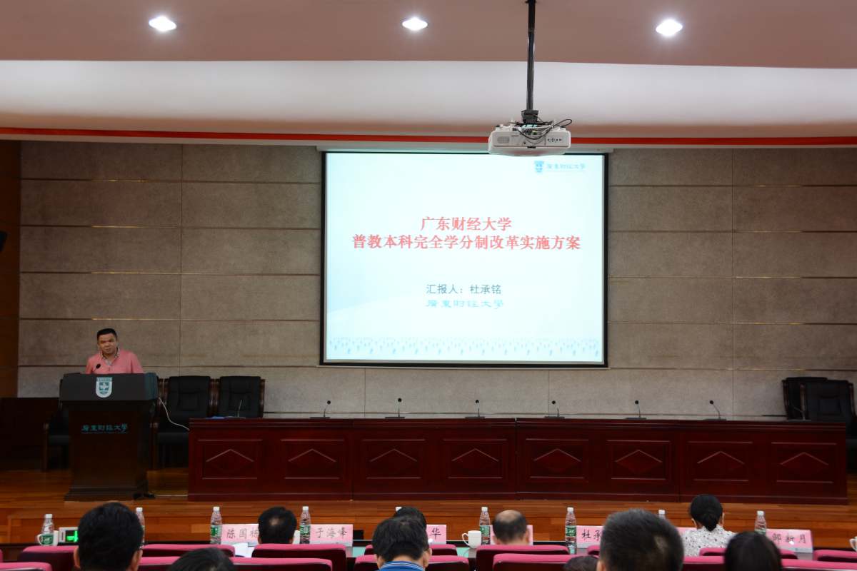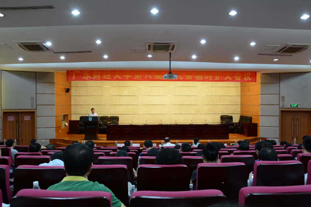 “赋予学生在一定范围内自主选择课程、任课教师、学业进度和专业的权利……”昨日,在第六届教代会临时扩大会议上,副校长、学分制改革工作小组组长杜承铭如是说。学分制改革是学校建设发展和学生成长成才的大事,为使改革方案更加科学合理,学校专门召开教代会临时扩大会议,300余名各类代表共商《广东财经大学普教本科学分制改革实施方案(征求意见稿)》。5月10日下午,全体会议在综合楼408召开,校工会常务副主席王小波主持大会。