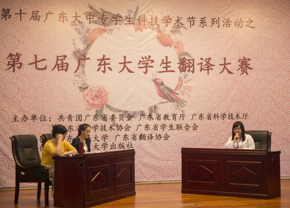 广东大学生翻译大赛是广东省学术科技节的一个传统项目,本届大赛由主办方委托我校团委具体组织实施,4月初正式启动,历时近两个月。大赛分为英语、日语两个语种,高职高专、本科两个组别,各有笔译和口译两种比赛形式。经各高校预选赛、大赛组委会评审团复审,最终来自全省62所高校的170名选手从89所高校推荐的600多名同学中脱颖而出进入决赛。参赛选手纷纷表示,翻译大赛是一次难得的学习、交流和自我提升机会,收获良多,是人生难得的一次磨砺。