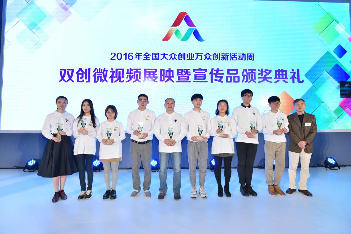10月16日,2016年全国大众创业万众创新微视频展映暨宣传品颁奖典礼在北京举行。我校荣获优秀组织奖;艺术学院学生黄泽彬设计的吉祥物“创特”获得一等奖,并被主办方采纳作为全国“双创活动周”吉祥物,广泛用于活动宣传;人文学院林晓聪等制作的微视频作品《城归族的农村创业设计》获得鼓励奖。