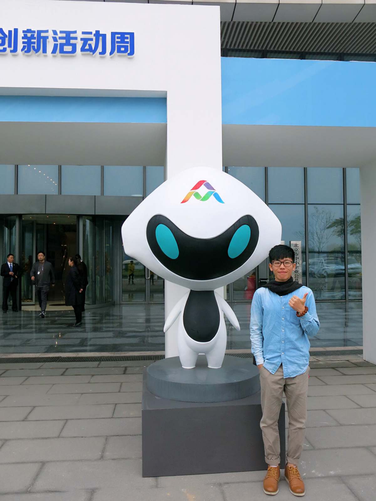 黄泽彬和他设计的吉祥物“创特”