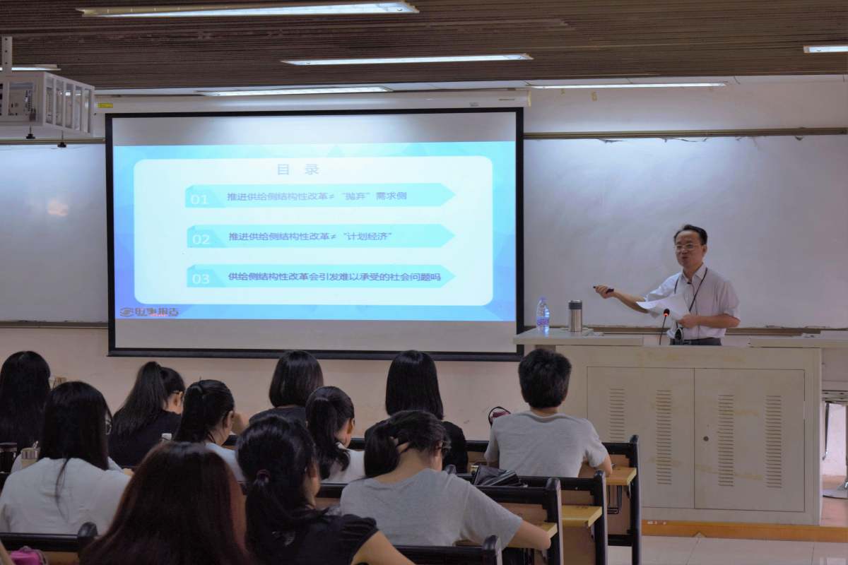 10月25日下午,校长于海峰在佛山三水校区笃行楼219课室为2015级财务管理班、注册会计师班及内部审计班的同学讲授了题为《正确认识供给侧结构性改革》的思想政治课。