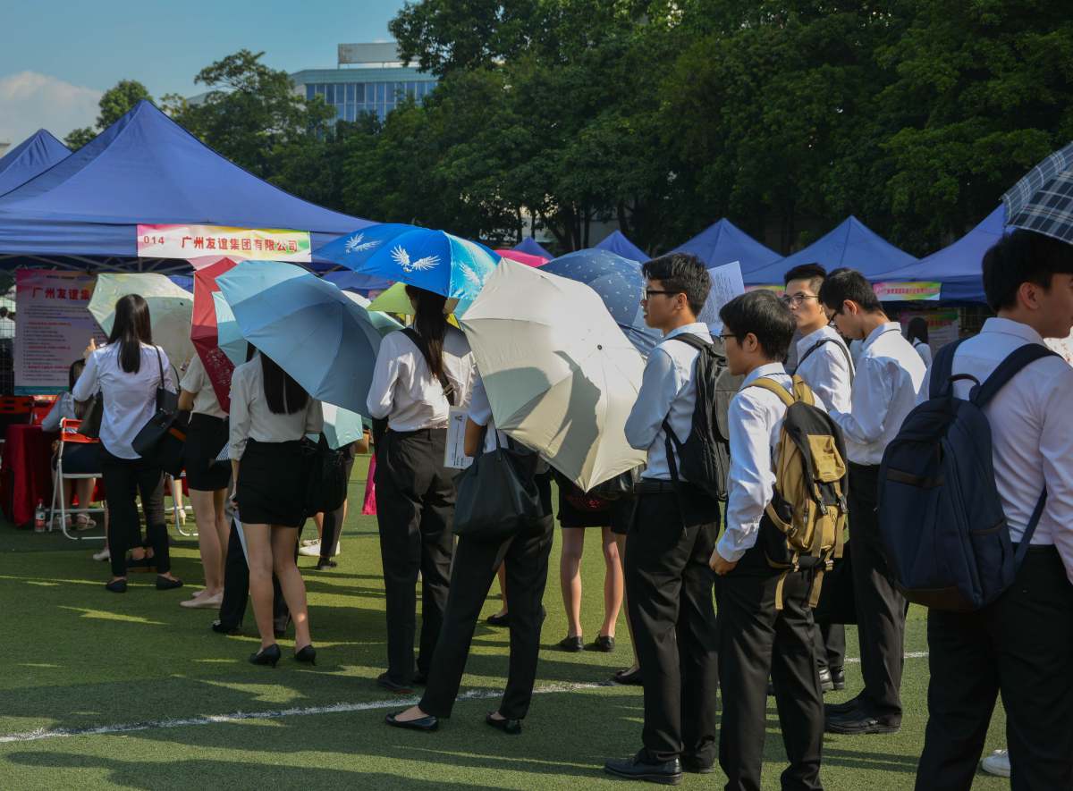 10月27日,以“阳光就业·事业扬帆”为主题的2016年高校毕业生系列招聘会广东财经大学专场在我校广州校区田径场举办。
