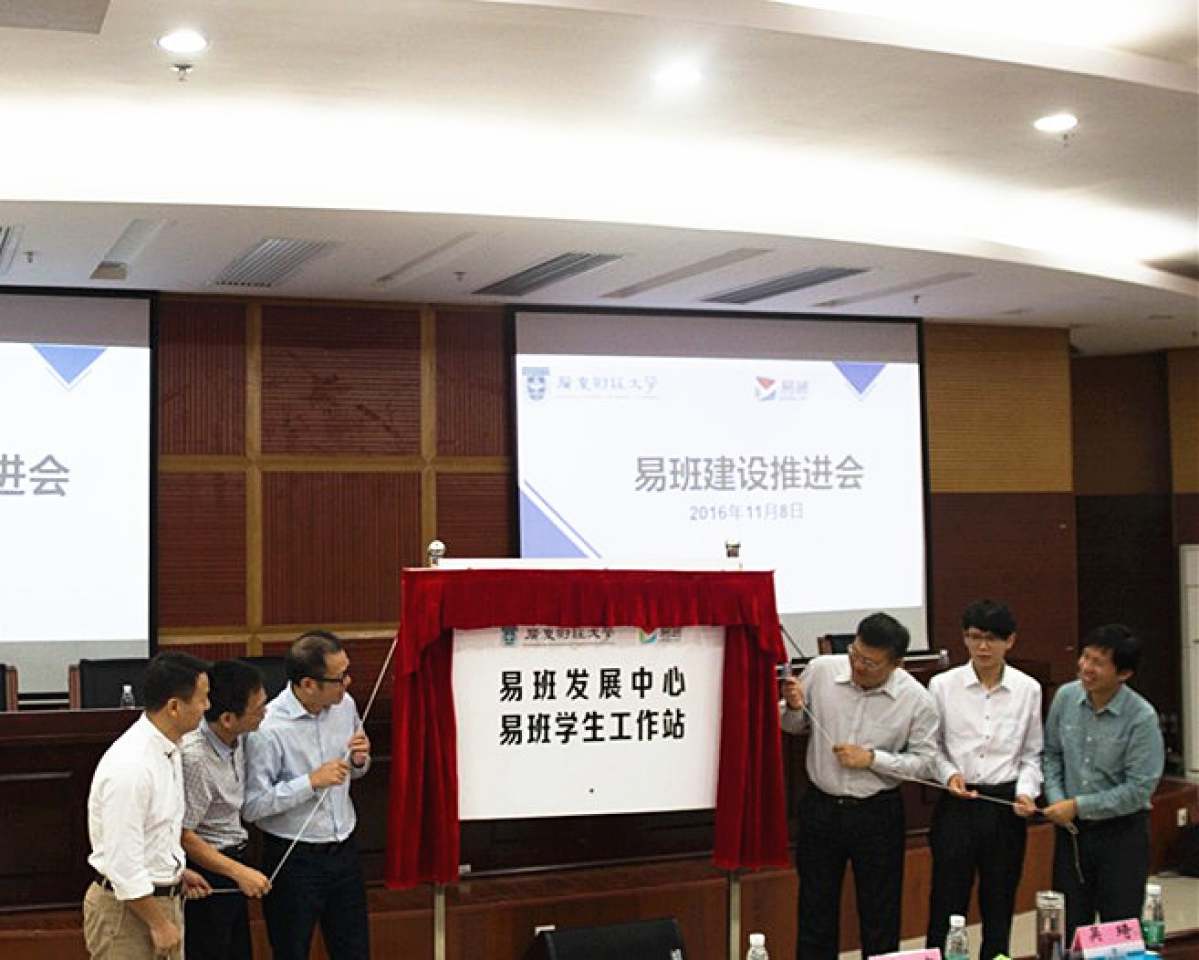 吴琦(右三)等为易班发展中心和学生工作站揭牌 黄莎雅摄