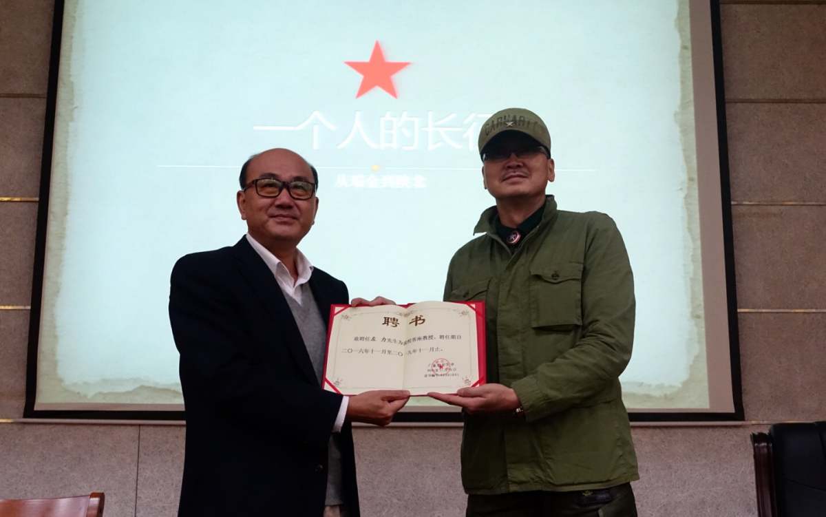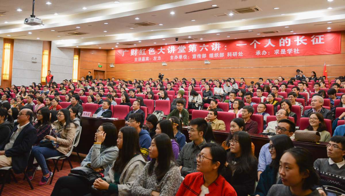 11月11日下午,由宣传部、组织部和科研处主办、求是学社承办的广财红色大讲堂第六讲——“一个人的长征”在综合楼408会议厅举行。摄影家、纪录片导演、中国新闻摄影金奖获得者左力做客“广财红色大讲堂”,讲述一个人长征的故事,这也是他重走长征路后举办的第269场全国巡回演讲。校党委书记黄晓波主持讲座并为左力颁发客座教授聘书,校党委副书记袁新满、吴琦出席,全场座无虚席。