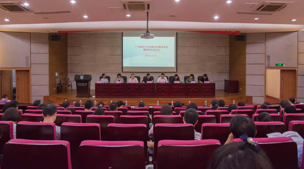 为了解国内外创新创业教育理论前沿与教育实践,加强我校创新创业教育师资队伍建设,11月19日-20日,教务处与创业教育学院共同组织召开首届广东财经大学创新创业教育论坛暨师资培训会议。上海财经大学创业学院副院长宋达飞,河北地质大学创业教育学院院长朱燕空,埃里克森国际教练学院鲁华章博士,我校各学院分管本科教学工作的领导、专业教师代表、教务处和创业教育学院相关人员参加会议。副校长杜承铭到会并致开幕辞,教务处处长李俊主持会议。