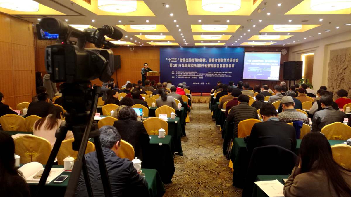 12月17日上午,由高等学校出版专业教学指导委员会主办,我校人文与传播学院承办的“‘十三五’时期出版教育的传承、借鉴与创新学术研讨会暨2016年高等学校出版专业教指委全体委员会议”在广州召开。来自全国40多个高等学校和新闻出版单位的70多位学者专家代表与会,畅谈出版教育的传承、借鉴与创新。教学指导委员会主任委员、国家新闻出版广电总局人事司副司长李宏葵出席会议并讲话,教指委常务副主任、北京印刷学院副校长王关义主持会议。