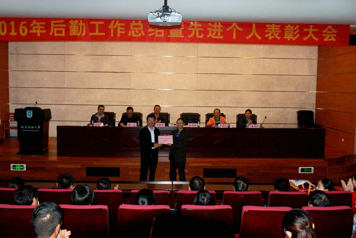 1月6日下午,后勤处在广州校区综合楼408召开了2016年后勤处工作总结暨先进个人表彰大会。副校长陈国栋,后勤处全体员工和学校签约服务单位的管理人员、受表彰人员与会。后勤处副处长陈立主持会议。