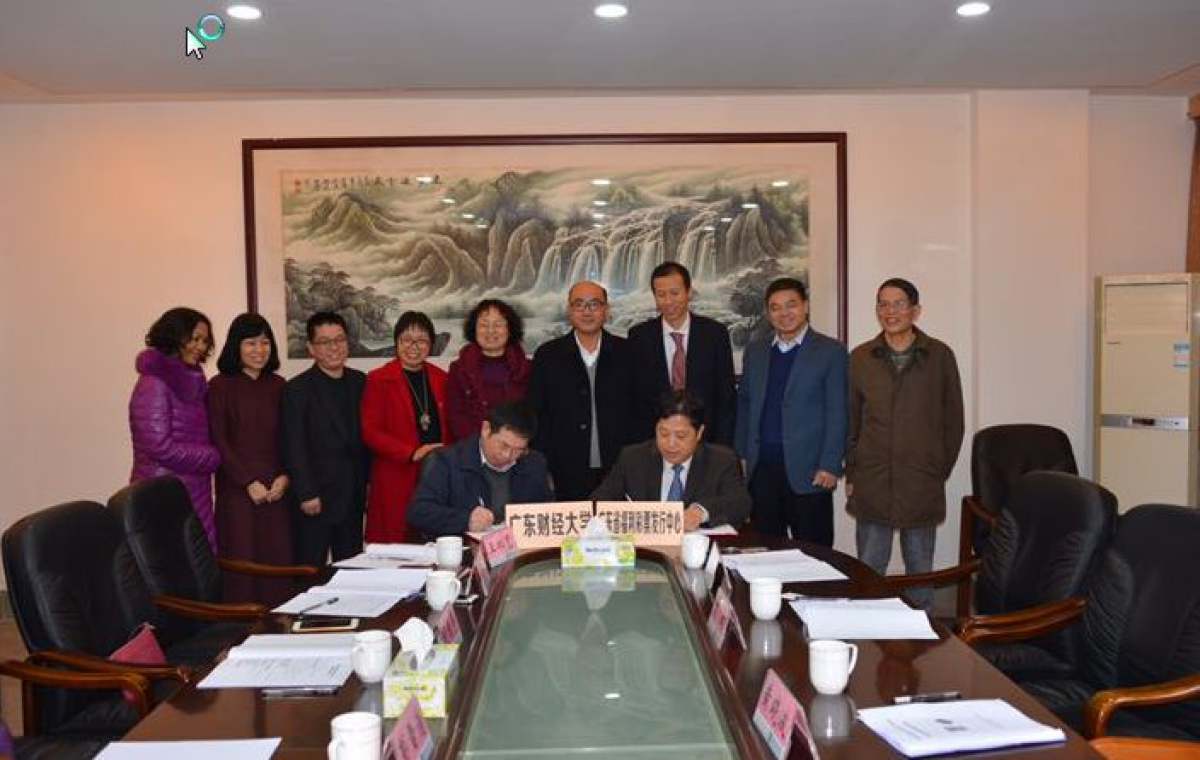 1月16日下午,由广东省福利彩票发行中心和我校共建的“广东福利彩票社会责任研究与实践基地”(以下简称“基地”)续约仪式在我校举行。副校长邹新月和省福彩中心主任黄严冰分别代表双方签约。校党委书记黄晓波,省福彩中心副主任景敏,科研处、研究生处、工商管理学院和基地主要负责人等出席仪式。