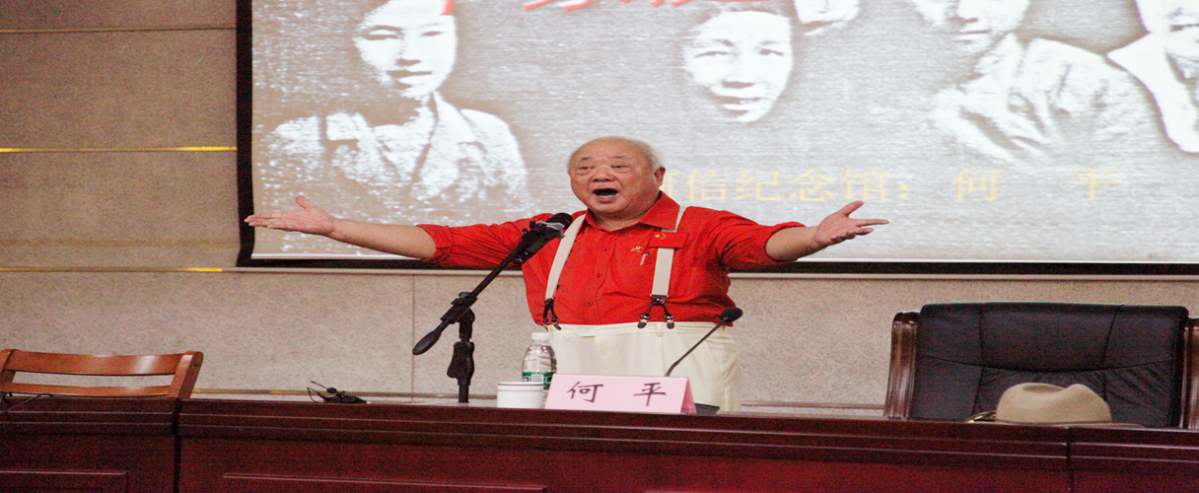 年过八旬的何平老先生为做好演讲,上场前打了两针封闭,贴了八片膏药,讲座中坚持少喝水,全程站立讲述,激情澎湃,一气呵成,不仅分享了何家几代人的爱国故事,也分享了他与妻子邓婕间的爱情故事。“‘不抽烟、不喝酒、听老婆话、永远跟党走’,这是我自己家里的‘四项基本原则’”,讲座现场,何平老先生笑言。