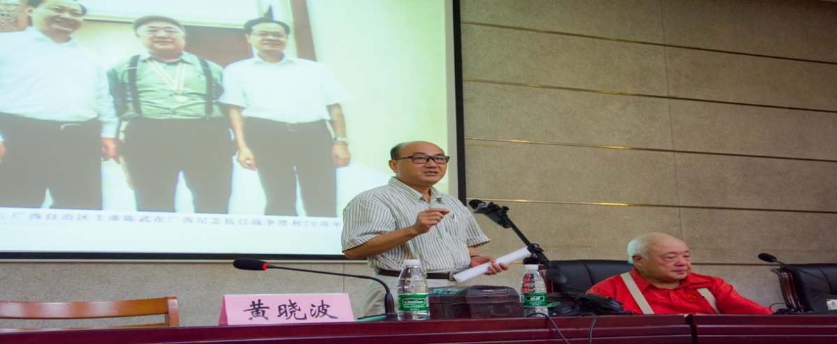 何平的祖父何少川于1905年在东京留学时参加了孙中山、黄兴等组建的中国同盟会,是广西有影响的革命前辈。他在日本留学时曾获得一个数学竞赛的奖项,获得巨额奖励,但并没有用来给儿女买礼物,而是大部分都购置了当时的先进教学设备给家乡的学校。何平的祖母靳永芳是广西第一个女同盟会员,清末民初妇女革命先驱,曾只身赴京刺杀李鸿章,并参加黄花岗起义,被称为“八桂侠女”。何平讲述了祖母跋山涉水赴京准备刺杀李鸿章的故事,并现场展示了当时用来装炸弹的刺杀工具——两层式皮匣子。虽然未能完成英雄壮举,但祖母靳永芳心中那份大义凛然的精神让人敬佩,现场听众深受震撼。何平的父亲何信在国家危难、民族存亡的危急关头,不惧生死,毅然驾机飞赴台儿庄抗日前线与日寇决死空战,最终身中六弹,仍驾机撞向敌机与敌人同归于尽。“娘啊,我要走了,今天下午两点你抬头仰望天空,你会看到,我将带领着十四架飞机在桂林上空盘旋三转,和家乡和大家告别,领头的飞机就是我,到时候我会摆动机翼飞行,你们看到不断煽动机翼的飞机,就知道那就是我。”师生听到何平老先生讲述父亲出征前与祖母的临别话语,很多人潸然泪下。现场何平老先生还展示了毛主席为父亲何信亲笔题写的“永垂不朽”题词真迹。