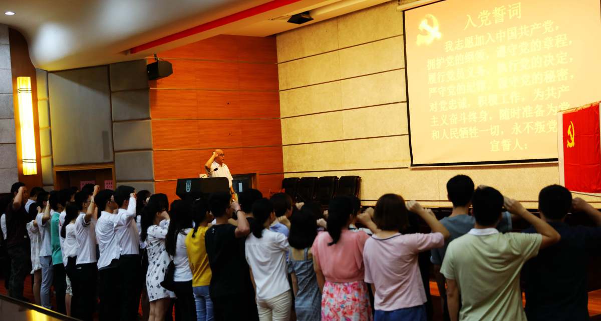 6月27日下午,我校在综合楼408举行新党员入党宣誓暨老党员重温入党誓词仪式。校党委书记黄晓波领誓并讲话,党委副书记吴琦主持仪式。广州校区教工新党员、部分研究生新党员和本科生新党员、各基层党委(党总支、直属党支部)书记、副书记、广州校区负责党务工作的政治辅导员等参加仪式。