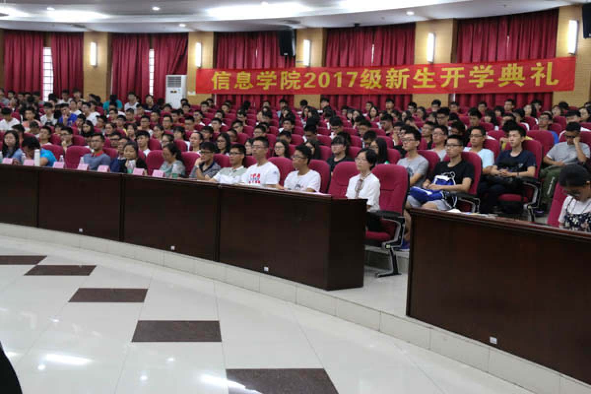 9月7日下午,信息学院2017级新生开学典礼暨专业与学习教育在佛山(三水)校区图书馆学术报告厅举行。信息学院院长贺敏伟、党委书记杨科龙、副院长朱树人、专业教师代表、辅导员及全体新生参加典礼。