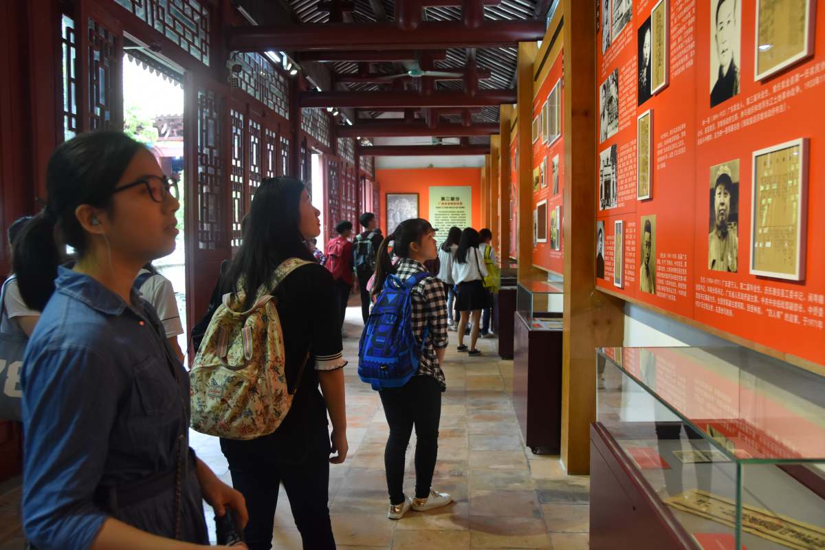 党员们首先来到中共三大会址纪念馆。馆内的《中国共产党第三次全国代表大会历史陈列》展览分“中共三大召开的历史背景”、“中共三大的召开”、“国共合作的实现”、“中共三大的历史作用和深远影响”四个部分,全面介绍和展示中共三大的历史。《春园故事——中共中央在春园》展览展现了中共三大前后中共中央领导人在春园指导中国革命这段波澜壮阔的历史。在参观过程中,学院党委副书记李恩华提醒各位同学,中共三大确定了与国民党合作的统一战线方针政策,对大革命高潮的到来起了决定性的作用,统一战线,是我党战胜强敌、夺取革命胜利的三大法宝之一,也是我党执政兴国的重要法宝。