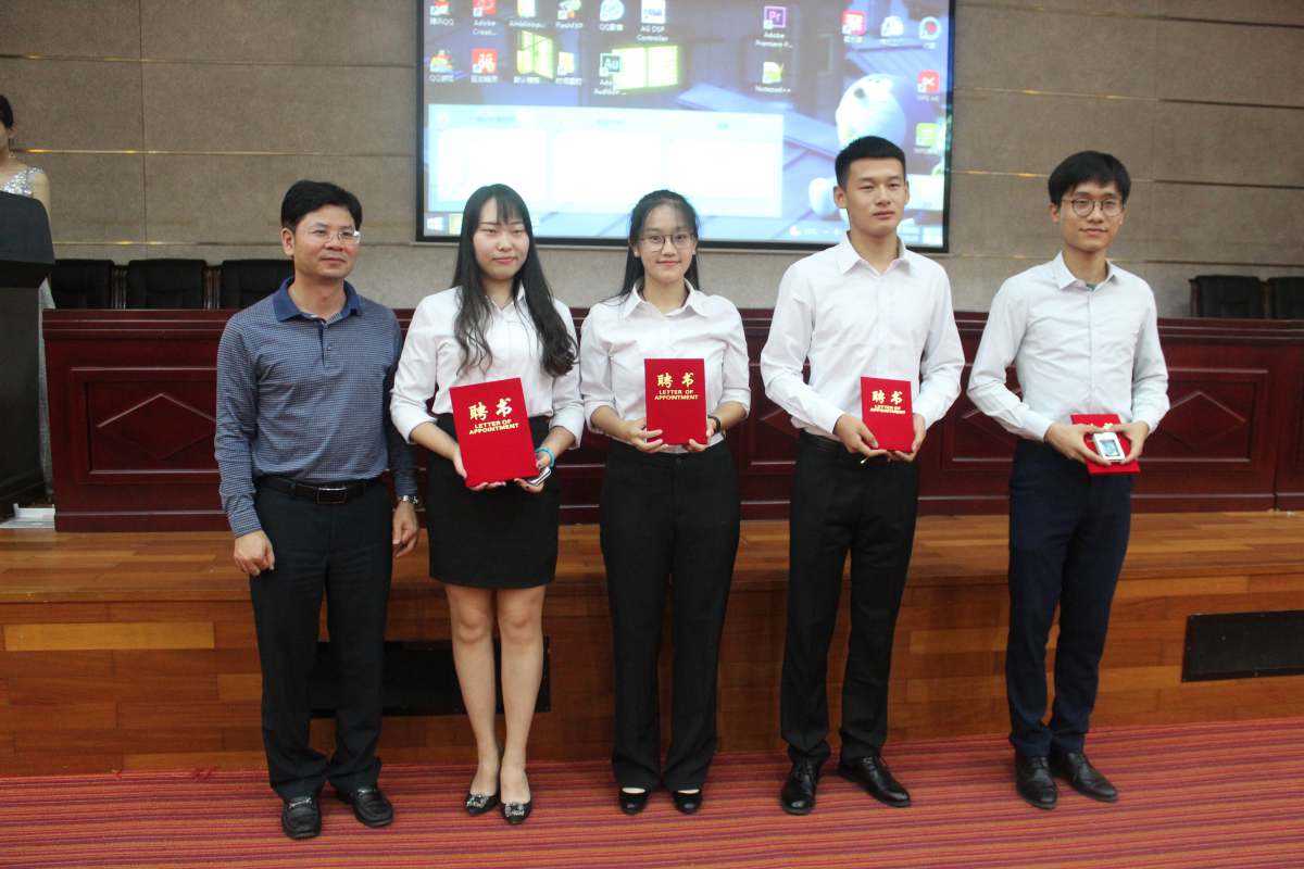 罗贤甲、罗玉燕及社团指导老师为新一届干部颁发聘书。各部门带来精彩表演,最后,成立大会在激昂的校歌声中落下帷幕。