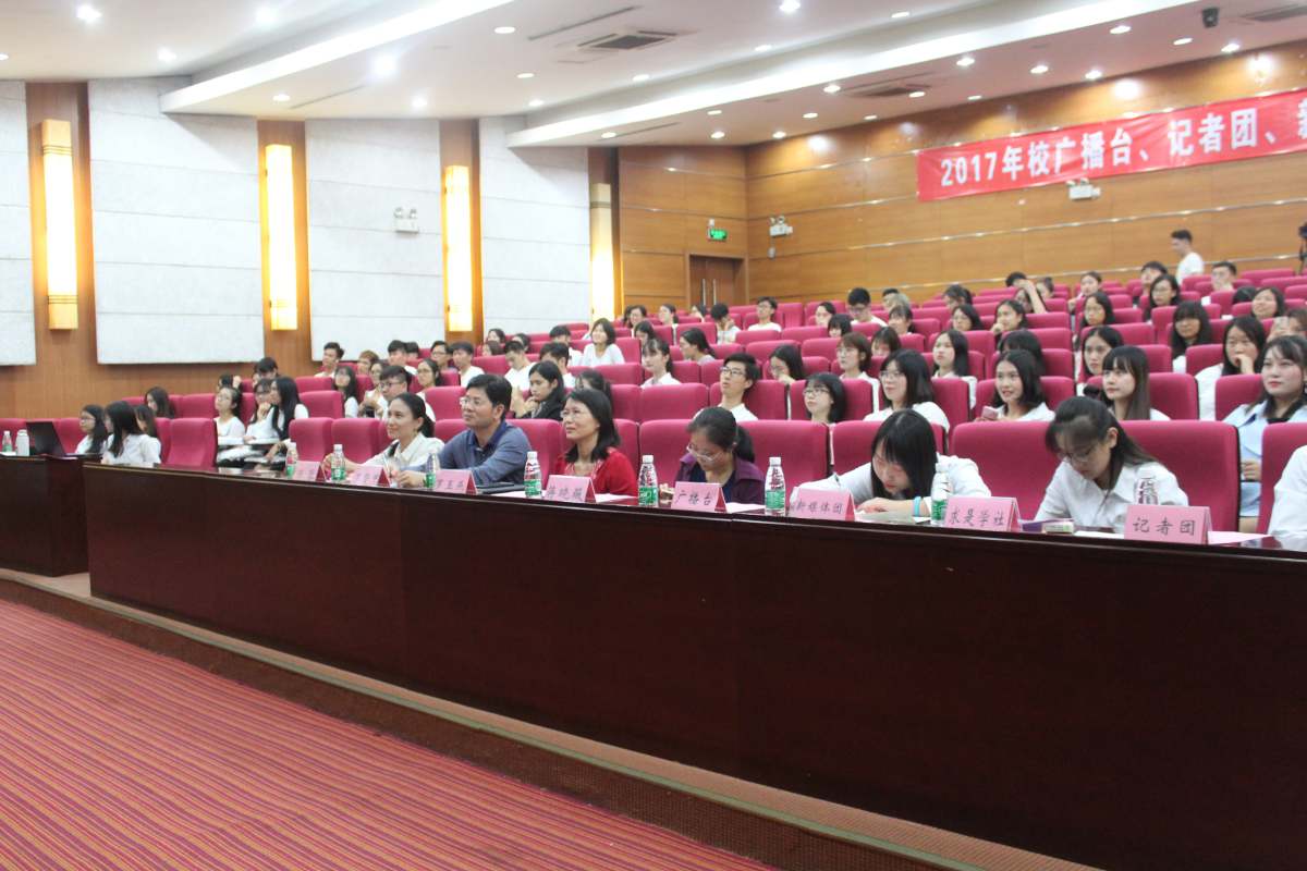 10月26日晚,由党委宣传部主办、校广播台承办的校广播台、记者团、新媒体团和求是学社联合成立大会在综合楼408召开。党委宣传部部长罗贤甲、副部长罗玉燕、广播台及求是学社指导老师陈蓉和记者团指导老师蒋晓薇参加大会。