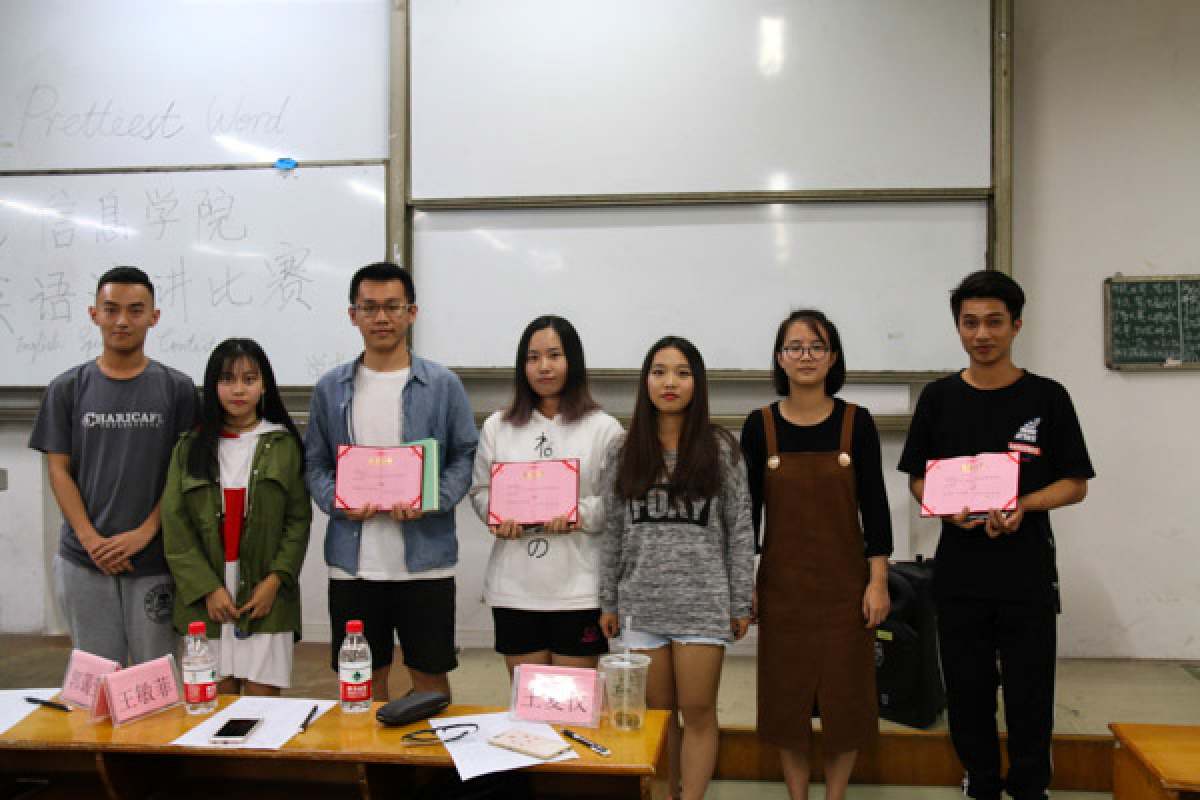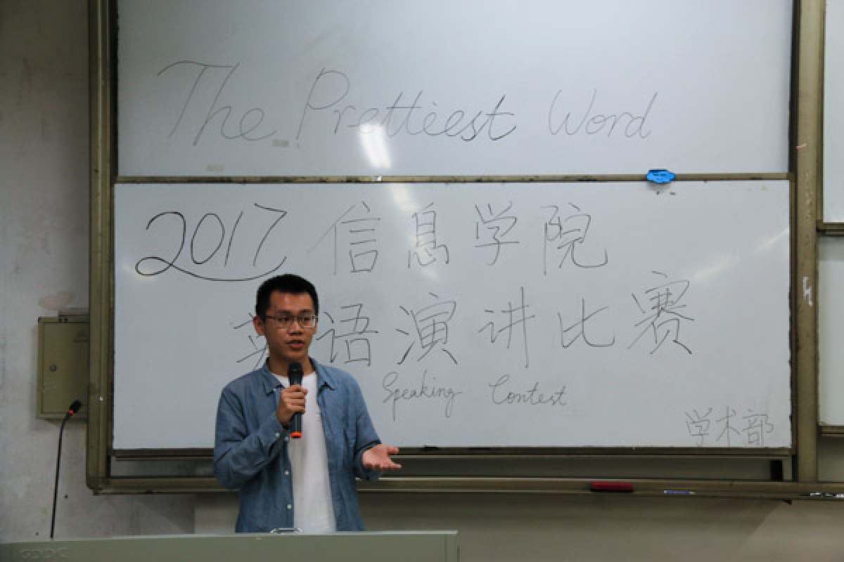 10月29日晚,信息学院在佛山三水校区举行英语演讲比赛。18位参赛选手围绕“The Prettiest Word”主题各自进行3分钟演讲。最终,方梓杰夺得冠军,许晓璇与郭元威分获第二名和第三名。