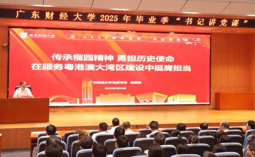 6月26日,广东财经大学党委书记郑贤操在广州校区正心堂为毕业生党员讲授离校前的“ ...