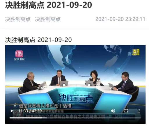 9月20日晩上九点二十分,深圳卫视高端战略问题访谈节目《决胜制高点》新一期播出 ...