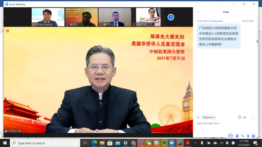英国时间7月21日下午3点,应郑泽光大使及夫人华梅参赞的邀请,我校侨联海外委员、 ...