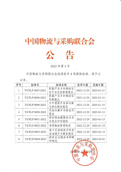 2022年12月29日,由中国物流与采购联合会批准立项,中国物流与采购联合会公共 ...