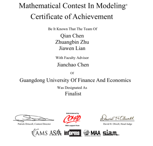 2021年美国(国际)大学生数学建模竞赛成绩日前揭晓,我校共获得特等奖提名(Fi ...