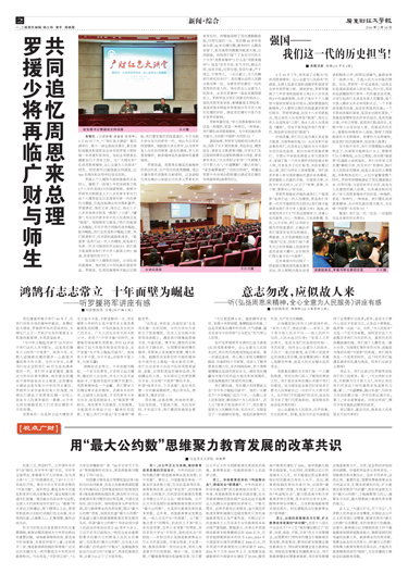 周总理虽然离开我们40年了,但我们依然为他的精神所感动。本期红色大讲堂,罗援将军再次莅临我校,为师生们上了一节别开生面的爱国主义和国防教育课,令我获益良多。 “为中华之崛起而读书”这句话对于我们这代人并不陌生,这是...