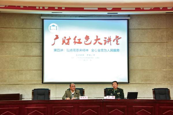 本报讯(记者徐颖 汤嘉丽 吴国帅)3月10日下午,“广财红色大讲堂”第四讲举行。第十一届全国政协委员、著名国际战略学和国家安全学专家罗援少将时隔一年再度作客我校,在纪念周恩来总理逝世四十周年之际,为广大师生作“弘扬周恩来精...