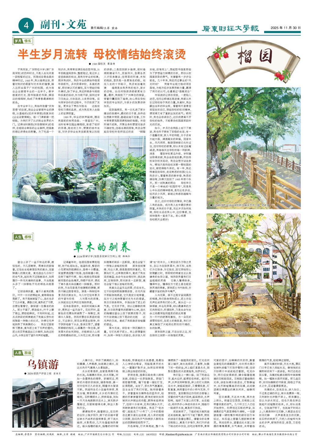 于我而言,广东财经大学(原广东商学院)的四年时光,不是人生长河里一段短暂的过往,而是刻在骨血里的精神印记。1985年,我从海南出发,带着对知识的渴望与对未来的憧憬,踏入这所坐落于广州的校园,成为商业企业管理专业的一名学子。教学楼里的灯光、图...