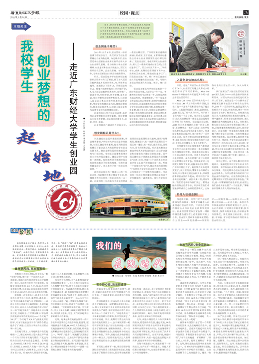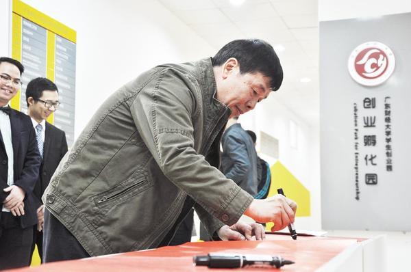 2015年12月22日下午,广东财经大学学生创业园揭牌仪式在广州校区创业园区举行。校长王华,党委副书记吴琦,副校长杜承铭、邹新月共同为创业园区揭牌。王华等参观了园区,认真听取了园区管理人员和各项目团队介绍,并提出发展建议。王华为创业园题词:...