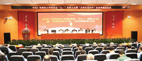 校党委副书记罗贤甲宣读《关于表彰广东财经大学优秀共产党员、优秀党务工作者和先进基层党组织的决定》和“光荣在党50年”纪念章获得者名单。