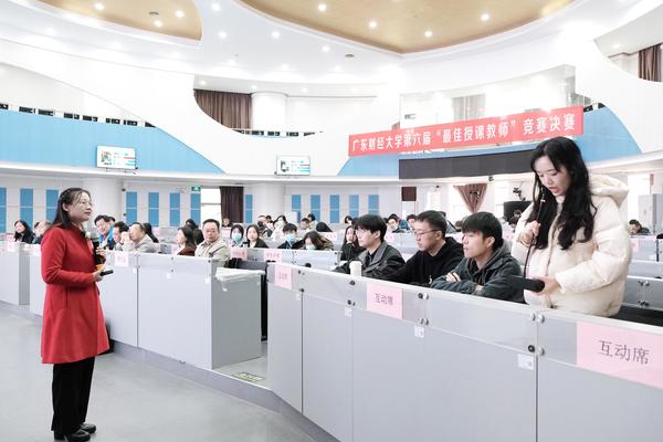 参赛教师依次上台授课,各自在30分钟的讲授中,展示自己精心制作的课件,教学风采各具特色。经过一天的角逐,公共管理学院赖怡琳、法学院戴激涛、经济学院徐娟、财政税务学院邝艳华、金融学院赵立军、统计与数学学院李真名列前六。公共管理学院赖怡琳以91.86分位居第一,她以“隋唐时期佛教建筑特征及其影响”为主题,通过讲授隋唐时期佛教建筑研究及其代表人物,激发学生学习热情,深化爱国主义教育,进而提升民族自豪感与文化认同感。法学院戴激涛以90.64分位列第二,她根据学生们在网络学习平台中提出的关于“香港基本法”是否是小宪法的问题引出“一国两制”与特别行政区的概念,通过与学生进行提问互动、举办线下辩论会等方式加深学生对特别行政区基本法的理解,结合香港与澳门回归的过程,激发学生爱国情怀与民族自豪感。经济学院徐娟以90.57分紧随其后,她以“消费函数之幸福函数”为题,以“派发棒棒糖”等亲切又接地气的授课方式拉近与学生的距离,使课堂氛围轻松活跃。