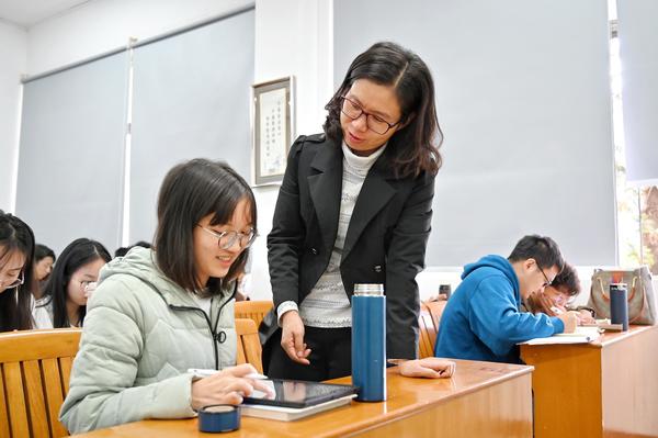初上教坛,刘娟遇到了大多数新教师都会遇到的问题:如何把控课堂、站稳讲坛,把自己掌握的专业知识传授给学生?为了呈现更好的课堂效果,除了接受前辈的指导、到他们的课堂上听课学习,刘娟还会在无课程安排的空教室里“磨课”,结合所学的讲授技巧和自己的认识,在一堂课的时间内把要讲的内容从头到尾讲一遍。她说,这种“自导自演”的“磨课”方式能够让她对课堂的内容有更精准的把控。一轮“磨课”下来,何为教学重难点、什么内容需要互动、什么知识点需要板书皆烂熟于心。正是这种看似耗费时间的“笨方法”,让刘娟的教学水平逐步提高。