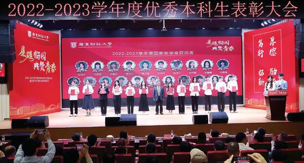 4月9日下午,学校2022-2023学年度“星耀榴园 典赞青春”优秀本科学生表彰大会暨优秀学生事迹宣讲启动仪式举行。校长于海峰,校党委副书记刘祖华、罗贤甲,副校长陈国栋,纪委书记王志云,相关职能部门负责人,校友代表,各学院党政负责人及分管学生工作负责人、学工部全体人员、辅导员代表、获奖学生代表和各年级学生代表参加表彰大会。