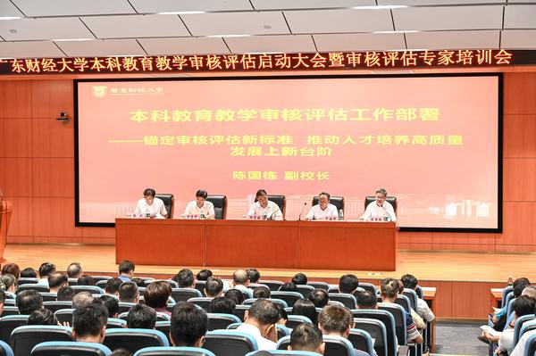 最后,校党委书记郑贤操作审核评估启动大会总结讲话。他指出:一要提高站位,统一思想,深刻认识到开展新一轮教育教学审核评估工作是对学校落实立德树人根本任务的全面检验。要以习近平新时代中国特色社会主义思想为指导,以党的二十大和党的二十届三中全会精神为主线,担当主责主业,转变“应考”心态,树立主动“备考”的意识,明确审核评估是学校加强自身建设和推动高质量发展的重要手段。二要以本为本,抓住关键,将审核评估工作与本科教育教学工作高质量发展紧密结合起来。学校的本科教育教学与人才培养工作已进入内涵式发展的关键期,但在办学理念、教学模式、尤其是适应AI智能时代等方面仍存在不足。要借助此次审核评估的机会,找准教育教学中的问题与工作思路,持续深化本科教育教学改革,进一步凝练人才培养特色,提升本科教育教学和人才培养质量,办好让学生、家长、社会满意的大湾区一流财经大学。三要科学统筹,上下联动,高标准严要求推动审核评估各项准备工作落实落地。审核评估工作是一项系统工程,要统筹兼顾,协同推进,必须做到“全校一盘棋”。全校上下要深入学习《普通高等学校本科教育教学审核评估(2021—2025年)工作指南》《精要导读》《广东财经大学本科教育教学审核评估工作方案》。各职能部门、教学单位要把措施制定到位、把责任落实到位,充分调动全校的积极性和主动性,确保高质量完成审核评估任务,交上一份满意的答卷。