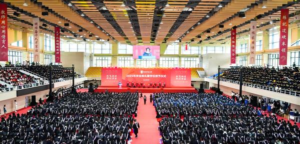 学位授予仪式环节,校党委书记郑贤操宣读了学士学位授予决定、硕士学位授予决定。今年我校共有6994名本科生被授予学士学位,共有1231名研究生被授予硕士学位。毕业学子们分11列纵队,相继走上主席台,接过校领导和主礼教师颁发的学位证书。