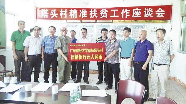 黄晓波还就做好下一阶段精准扶贫工作提出三点意见:一是秉持“以人为本”的理念,在工作中突出“人”的重要性,落实帮扶责任人,保障贫困户精准脱贫;二是对于塔头村光伏发电和异地购买商铺两个扶贫产业项目高度评价,指出光伏发电等项目具有可持续发展性,应抓紧落实,争取早日落地;三是指出社会主义新农村示范村建设应合理规划,科学环保利用废品,注重耕地保护和乡村特色的保留,与此同时不断增强村民环保意识,共同建设美丽乡村。会后,黄晓波代表学校党委向塔头村捐赠55万元扶贫基金。